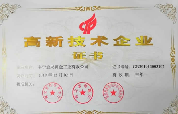 ·áÄþ½ðÁú»ñµÃ¡°¹ú¼Ò¼¶¸ßÐÂÊÖÒÕÆóÒµ¡±³Æºô